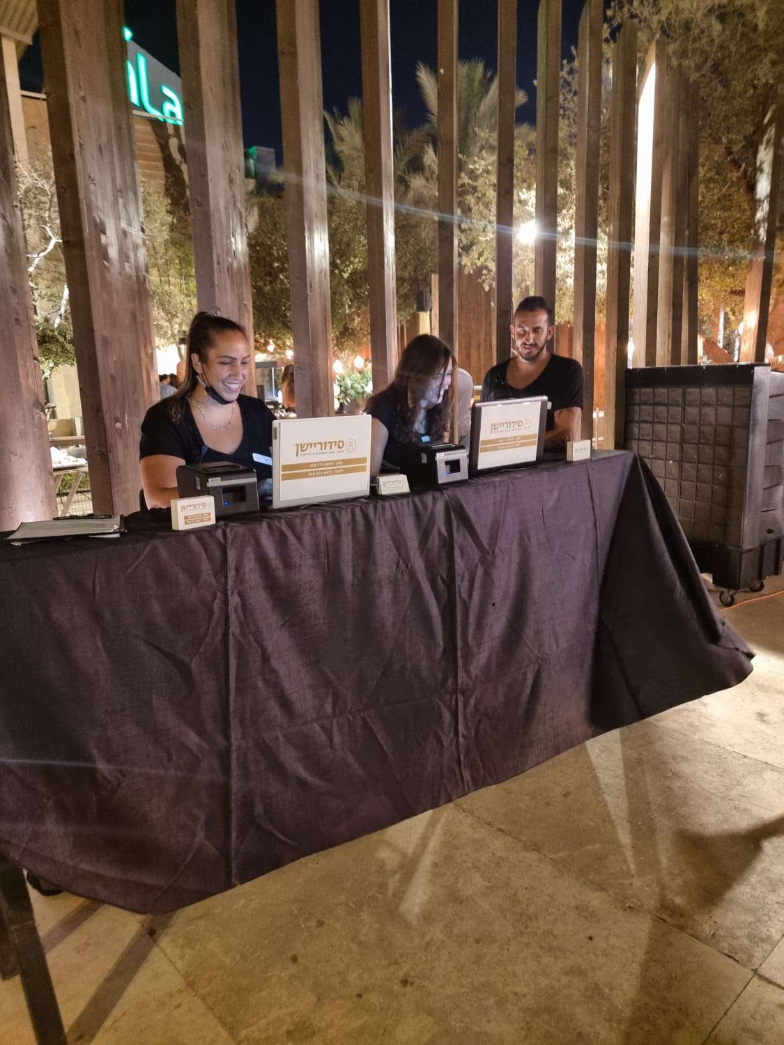 ביום האירוע בכניסה לאולם נקים את העמדה שלנו עם דיילות, מחשבים ורשימת המוזמנים.